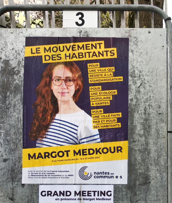 À Nantes, Margot Medkour s’est fait connaître lors des élections municipales de 2020 en prenant la tête de liste du mouvement habitant Nantes en commun·e·s, soutenu par La France insoumise. Sa liste recueille près de 9% des suffrages au premier tour, à quelques centaines de voix d’une qualification au second tour, ce qui en fait l’une des surprises du scrutin. Elle devient alors une figure identifiée de la gauche alternative municipale, portant une critique radicale du modèle de métropolisation et de la gentrification nantaise.
